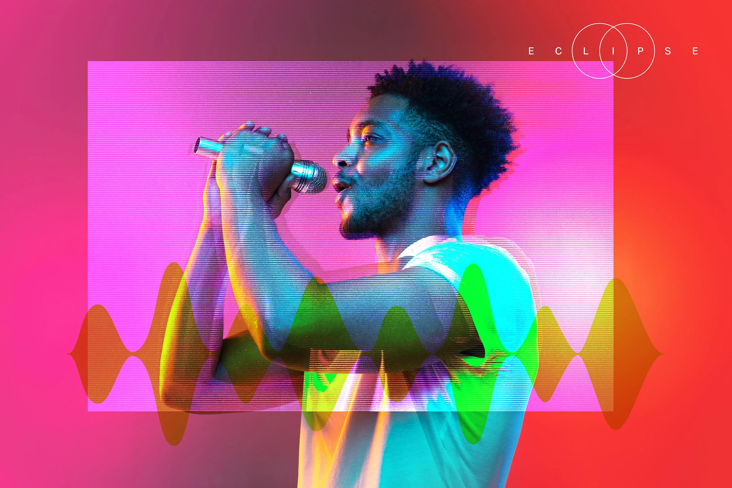 Neon gradients, saturated tones and shifting light effects inspired by nightclub visuals and digital culture.