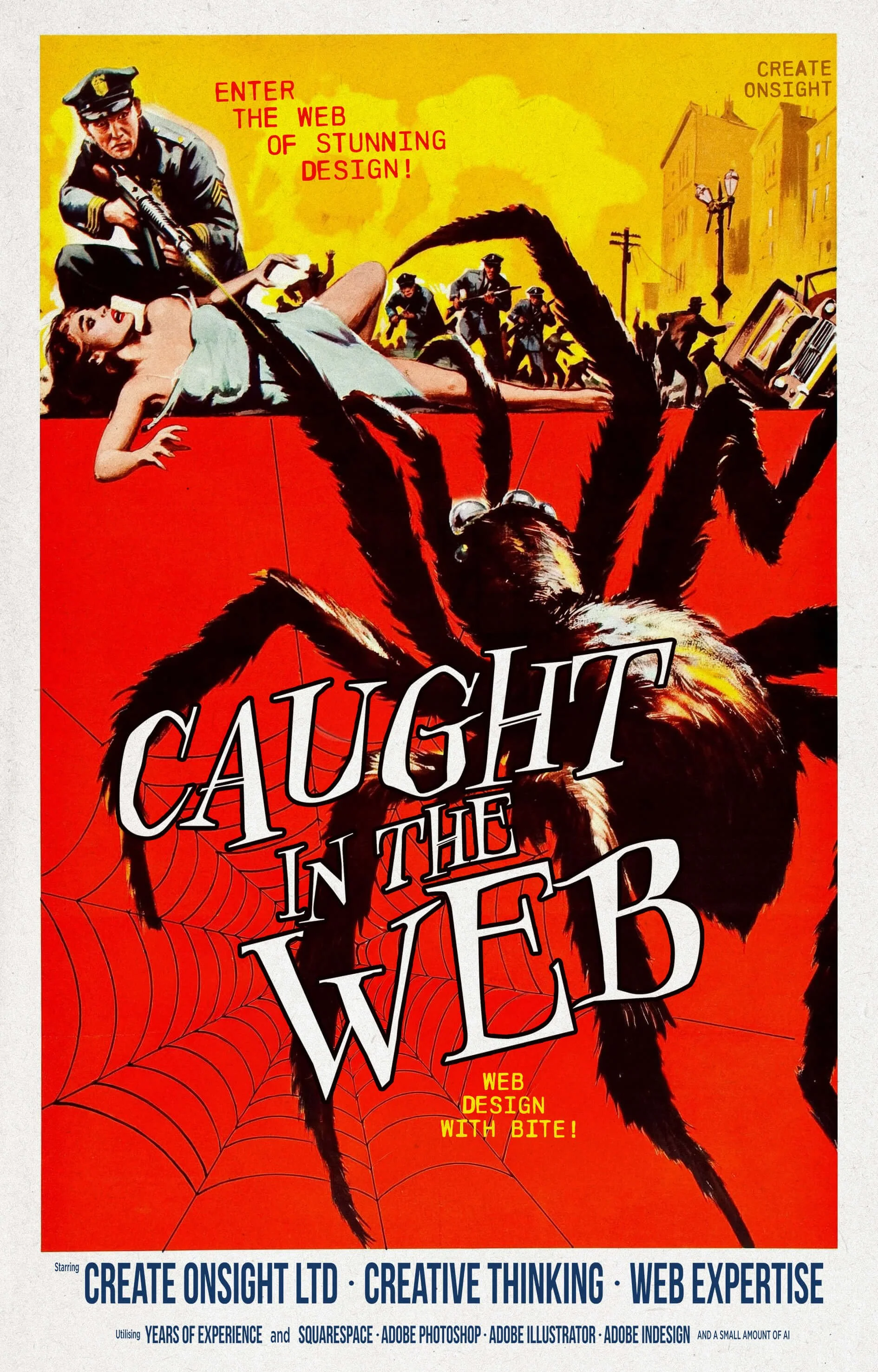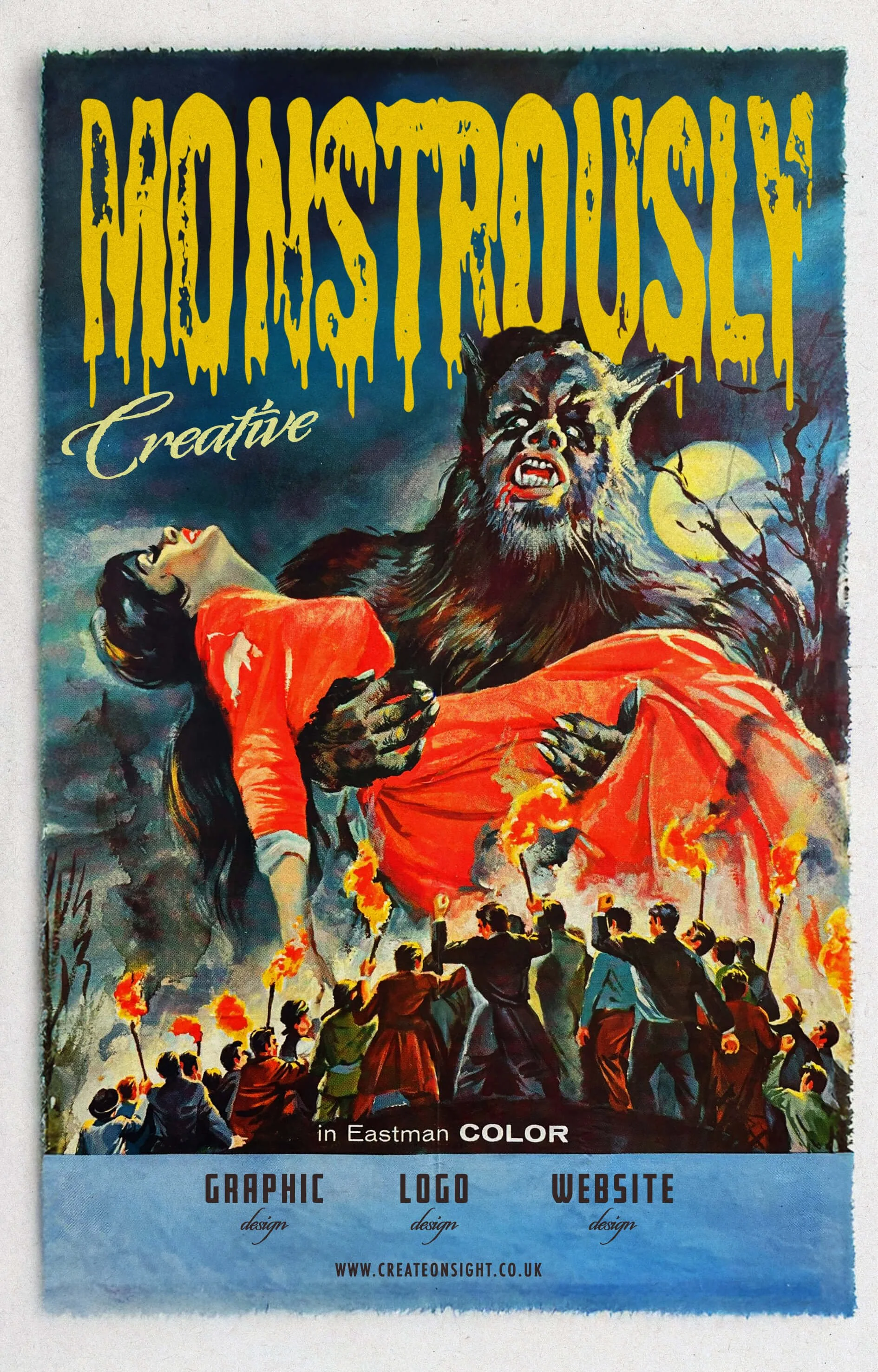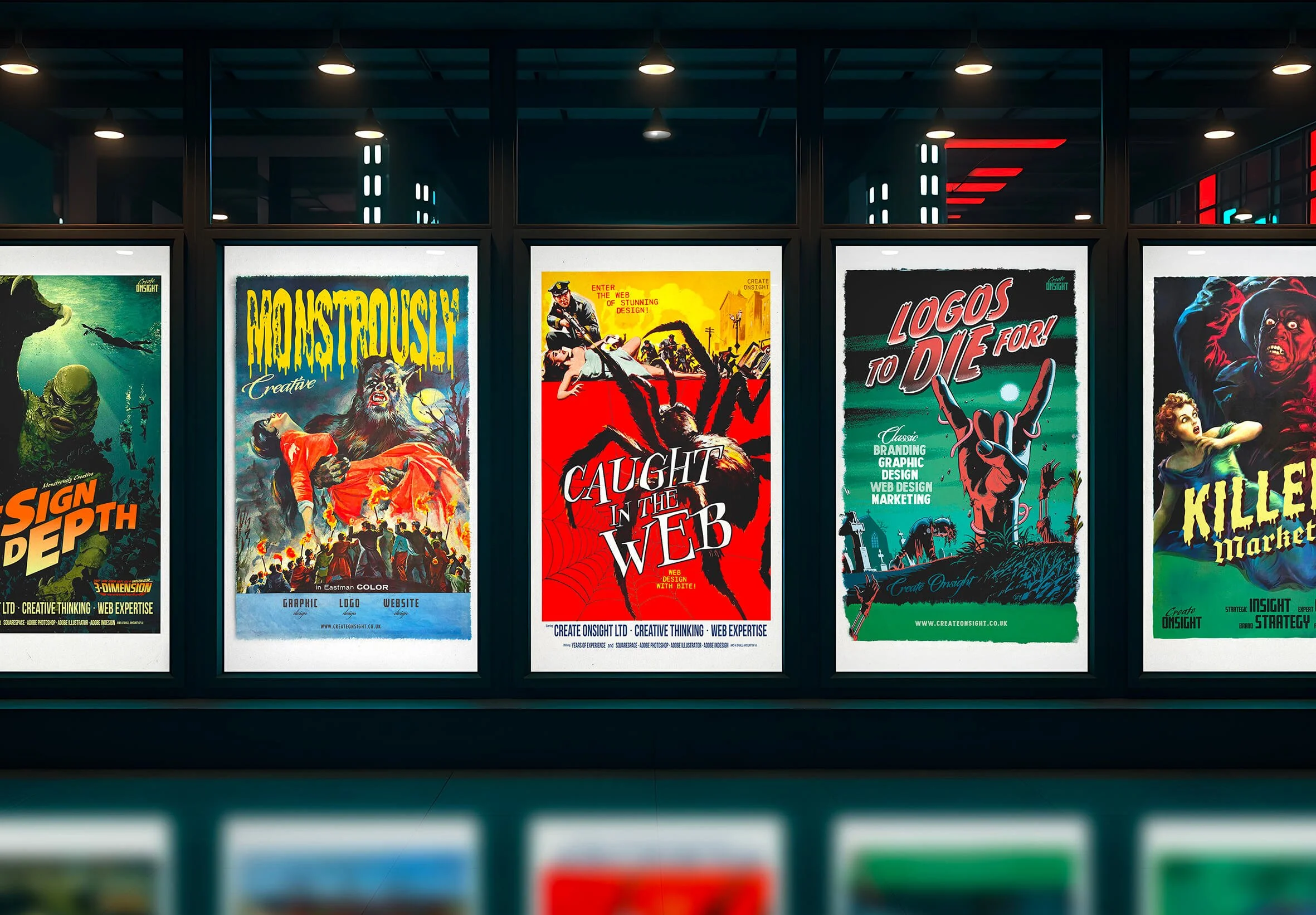 At Create Onsight, we believe design should capture attention, tell stories, and leave a lasting impression. This Halloween, we’ve drawn inspiration from the golden age of vintage movie posters, transforming their bold style and dramatic storytelling into a creative campaign that highlights what we do best: graphic design, branding, web design, and marketing.
